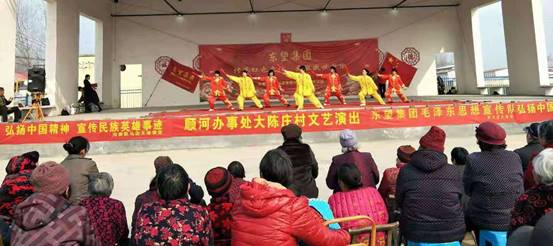 2019年3月6日, 天气晴朗,风和日丽,东望集团河南驻马店爱国主义演讲团80多名志愿者,不惜路途辛苦,来到离市区三十多里的顺河社区大陈庄文化广场乡村大舞台,为弘扬中华优秀传统文化和毛泽东思想,传播雷锋精神做义务演出。