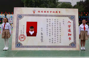 稚嫩、纯真的孩子们,走过象征一帆风顺的“风车墙”,前后有序的在校徽上印下了红红的小手印,这不平凡的一刻,印下了她们对祖国的热爱,对学校的感情,对求知的欲望,对小学生活的美好憧憬……。爸爸妈妈、老师、媒体朋友用手机相机帮她们在“入学通知书”前面记录下了这难忘的时刻。孩子们自豪的说:从今天开始,我也成为一名新建的小学生啦!