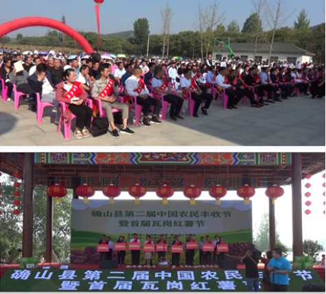 (摄制:吴学谦,高来清,张永胜 编辑:张永平刘伟平;冯付燕 审核吴长明)开幕式上,确山县委副书记、县长彭广峰致辞。县领导为带贫先进新型农业经营主体代表颁奖。随后,县委书记路耕宣布确山县第二届中国农民丰收节暨首届瓦岗红薯节隆重开幕。县委副书记陶玉强主持开幕式。开幕式结束后,精彩纷呈的文化节目相继上演