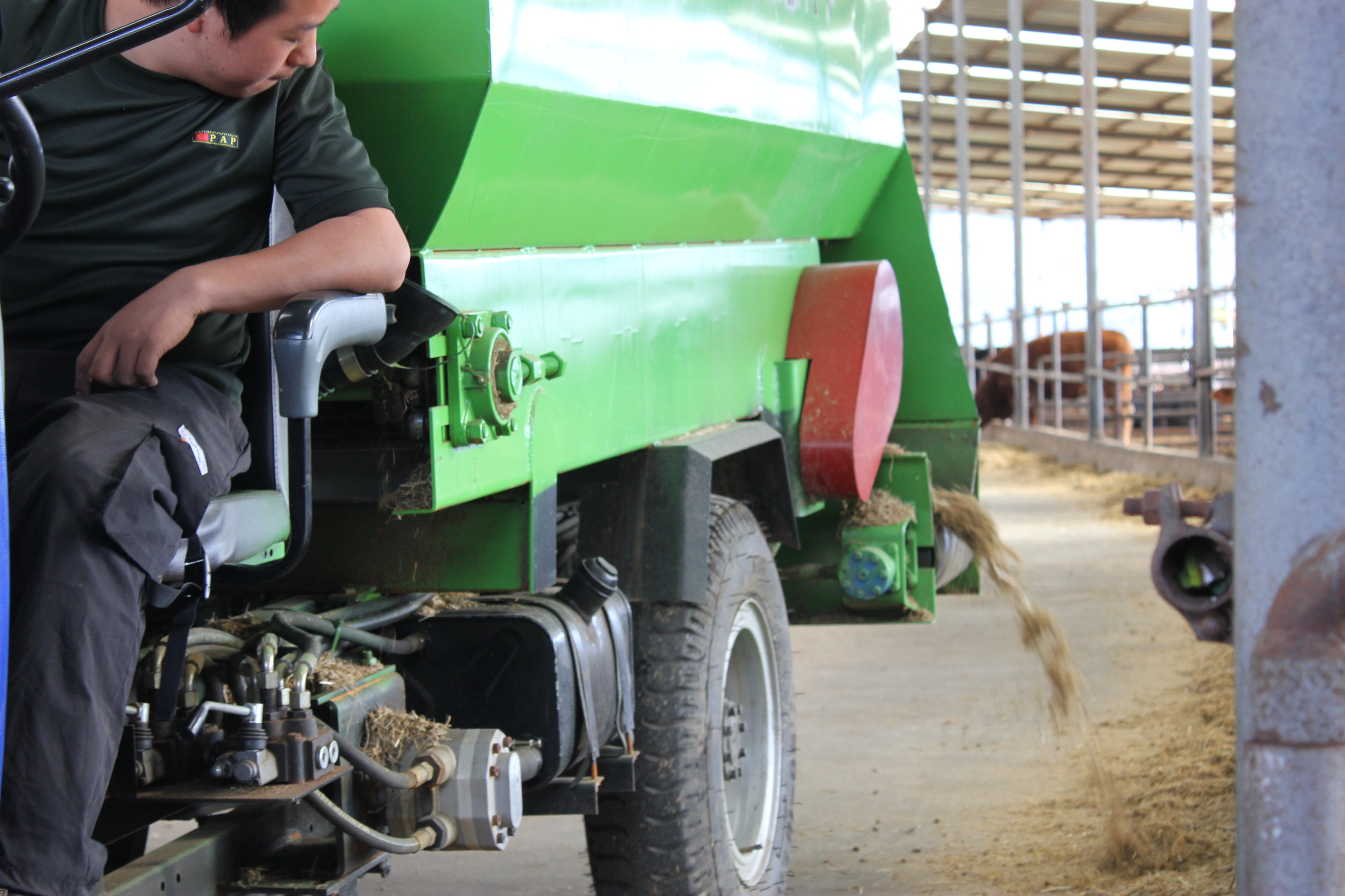 “在进入养殖场区前,我们要进入消毒房进行全身消毒,此举是保护我们的牛群不受潜在的危害!”公司负责人 樊总 介绍到。消毒之后进入养殖区,相关媒体皆称赞这一举措,也感受到养殖场的专业和规范。整个养殖区通风透气,干净卫生,牛群悠然自得。公司负责人 樊剑 一边给媒体代表介绍了目前在养牛群的品种,养殖厂房的设计结构、牛群喝水自动化装置,喂养饲料的加工和营养成分,还亲自操作喂料机械、演示了牛群自动饮水装置。